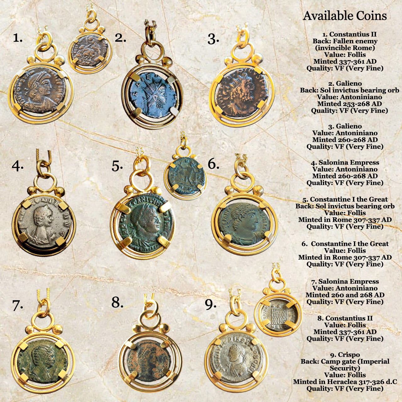 Desde entonces he visitado tiendas de antigüedades, salas de coleccionistas o mercadillos tradicionales sin salir de mi asombro he comprado estas piezas auténticas de la época romana, de hace 2.000 años y las he incorporado a mis joyas.