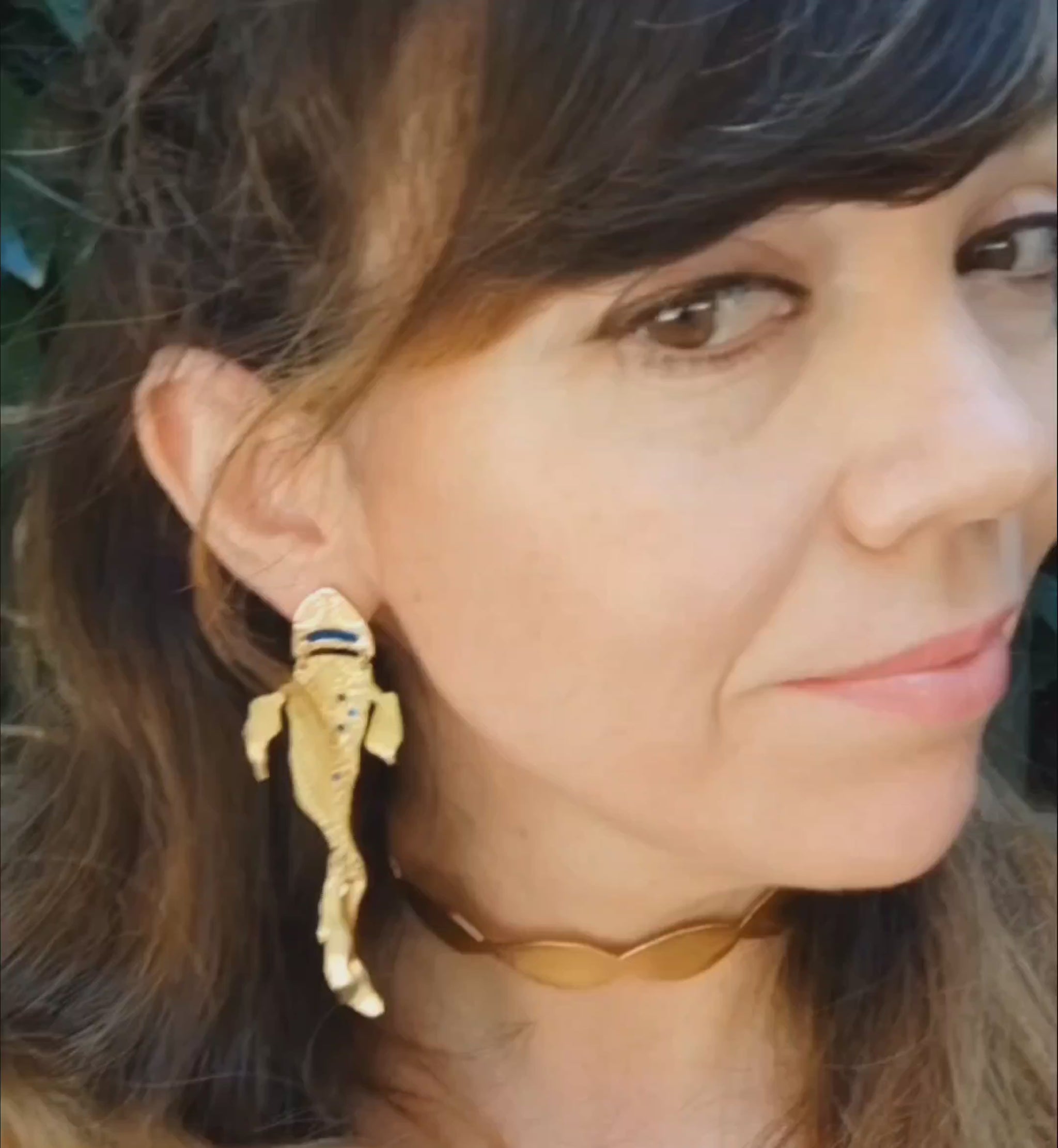 Esos dibujos me inspiraron. Transmuté la idea al metal y este fue el resultado, los Pendientes Piscis Acuarela. 🎨 🐠